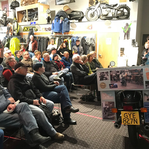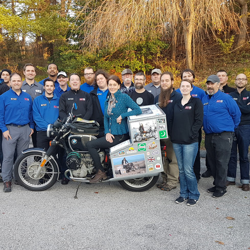 Kindly invited by Bob at Bob's BMW dealership based in Jessup, Maryland to give a presentation at his dealership and to visit his amazing museum. Bob had taken a BMW R60/6 and made a replica of my aluminium panniers and top box which is now and exhibit in his museum! As I had thrown out my original bespoke aluminium luggage out about 20 years ago so seeing it again was very emotional for me. Bob now has my original tank bag which I used on my RTW trip to add to the exhibit.